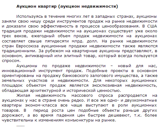 | Тема статьи: | "Аукцион квартир (аукцион недвижимости)" |